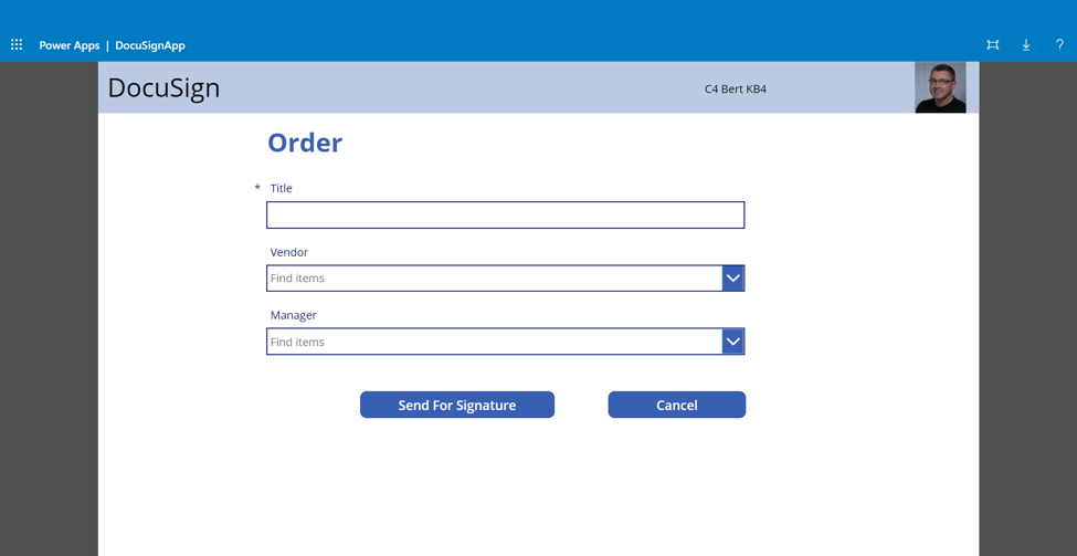 DocuSign App will be used to demonstrate how to get digital signed purchase order document from Power app.