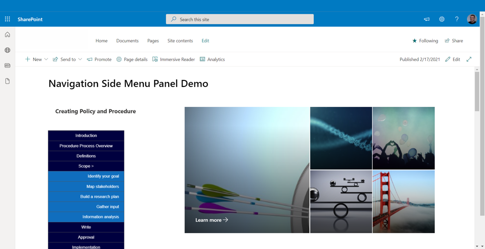 This webpart helps in building Tile View kind of menu with additional description where tile size, background color, tiles vertical and horizontal alignment can be configured using webpart properties