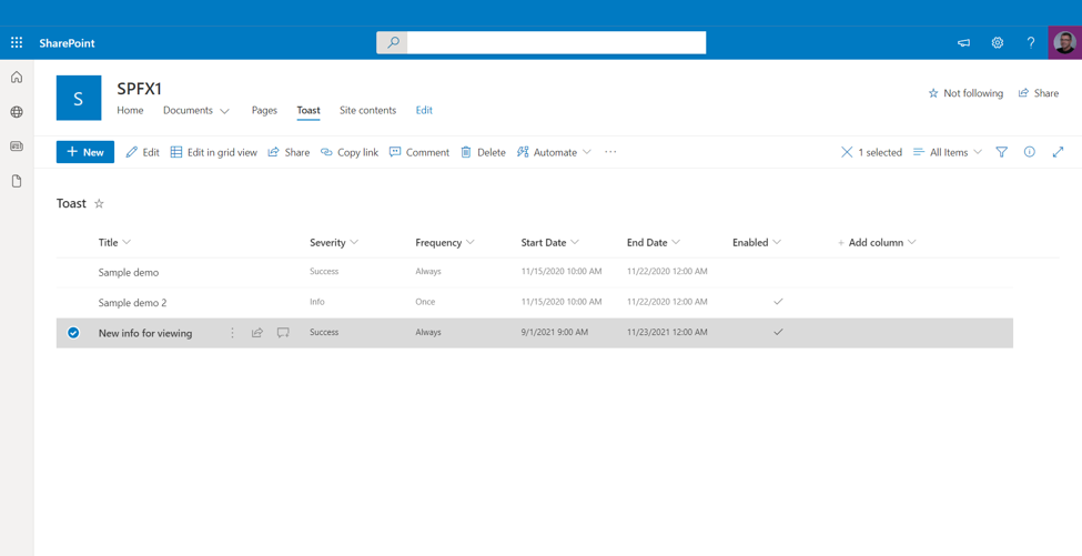 This application customizer adds custom Toastr Notifications to users and these can be controlled using SharePoint List.